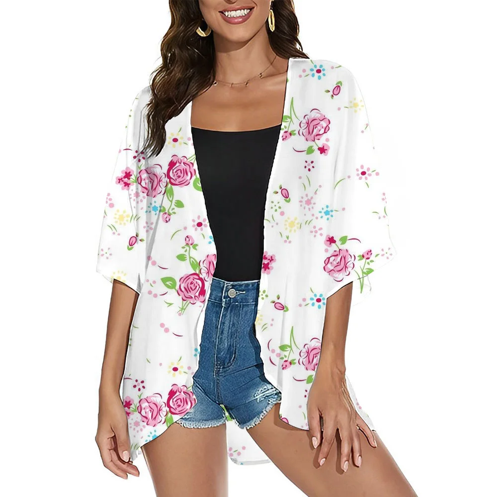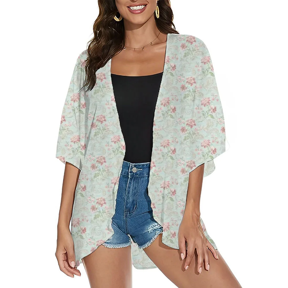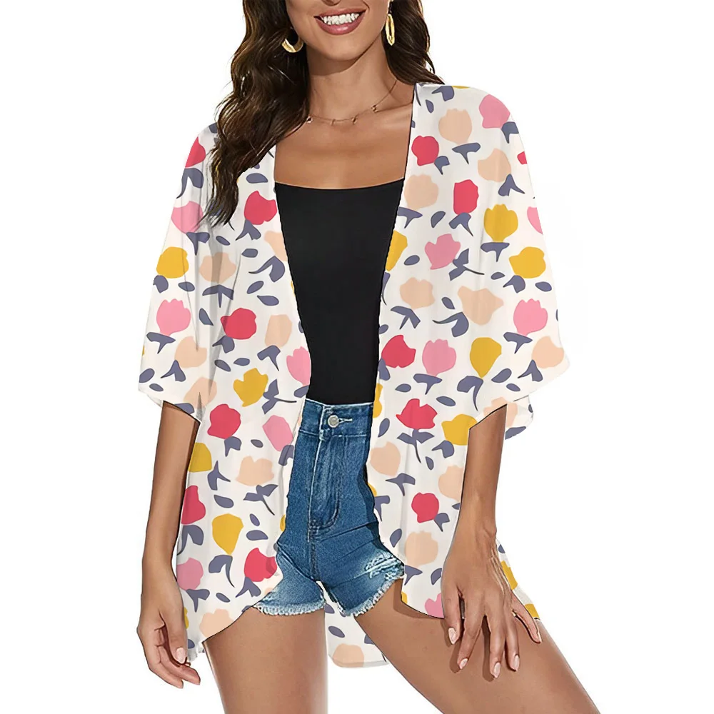 Summer Long Flowy Kimono Cover Up Tops Kimono Cardigan Coat Outwear Blouse Bohemian Bikini Hawaii Chiffon Shirt Beach Party