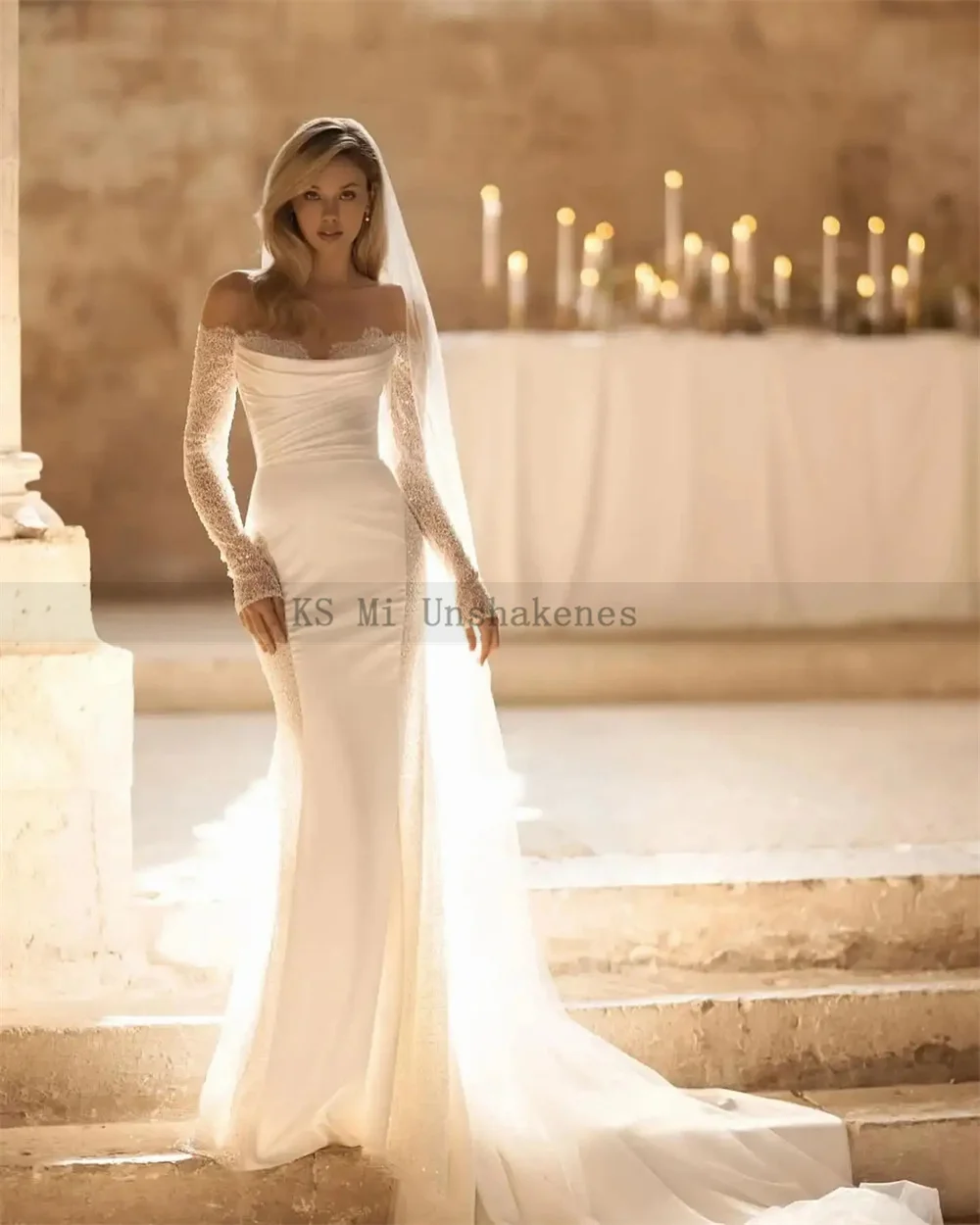 Sexy Mermaid Lace Long Sleeve Wedding Dresses 2025 Berta Bridal Dress Women Sweetheart Off Shoulder Wedding Gowns Customized