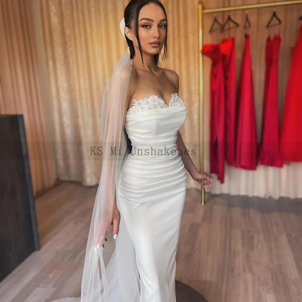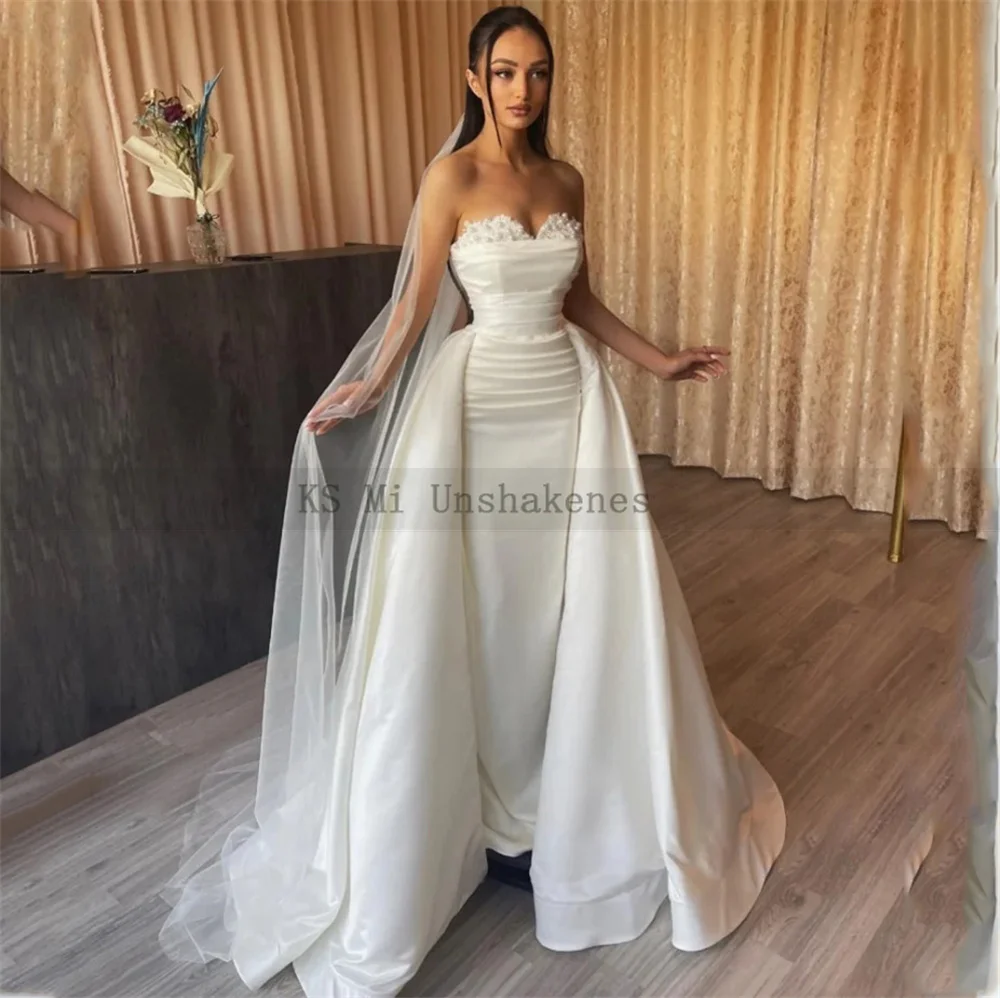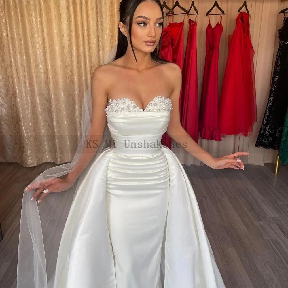 Elegant Mermaid Wedding Dresses Detachable Train Customized Ivory Wedding Gowns Pleated Pearls Lace Satin Bride Dress 2025