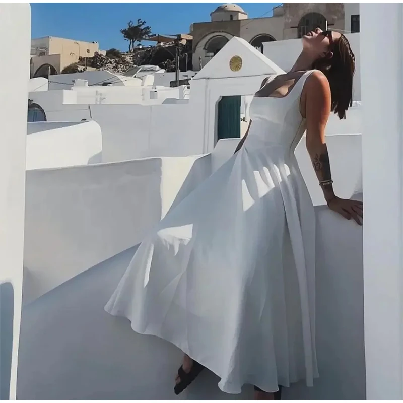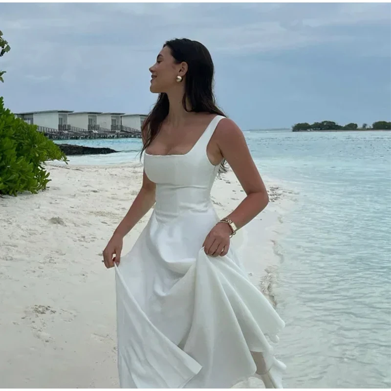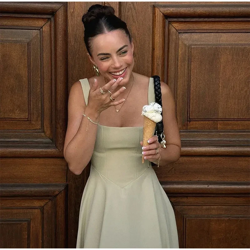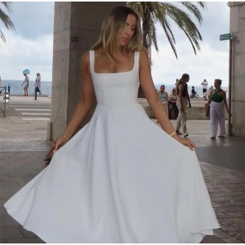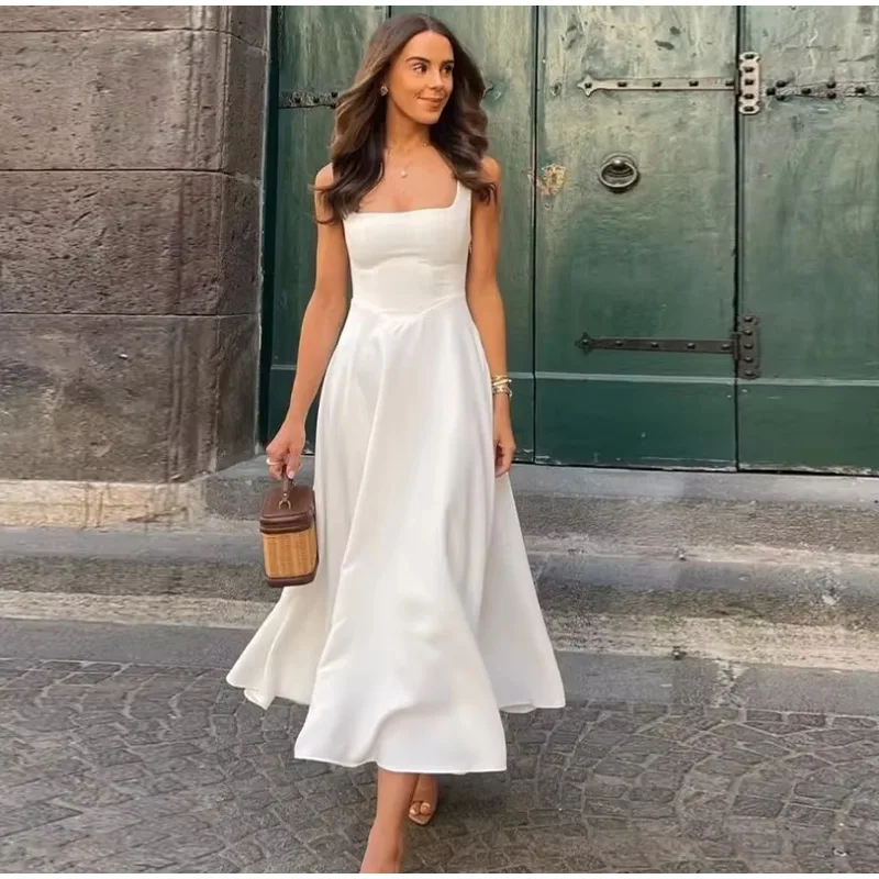 Elegant Square Neck Midi Dress For Women Summer Sleeveless High Waist Party Wedding Dress Female Chic Holiday Evening Vestidos
