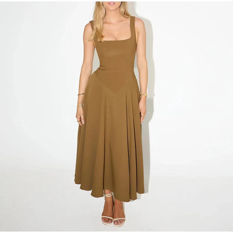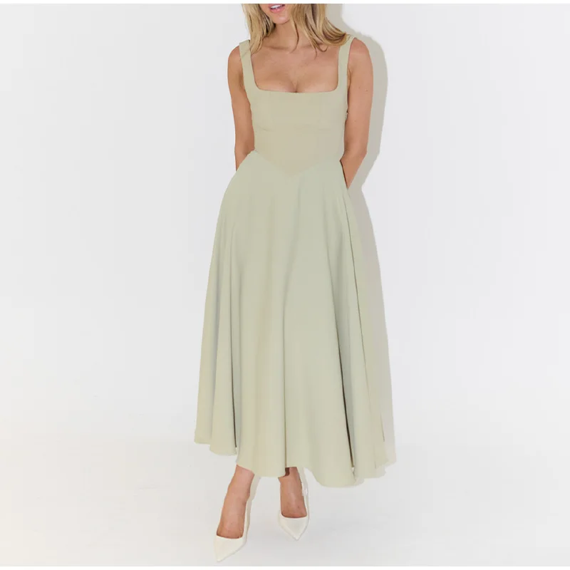 Hign-concerned Chemical:None Craft of Weaving:Tat Material Composition:synthetic fiber Release Date:Summer 2025 Closure Type:Pullover Profile Type:A Fabric Type:POLYESTER Type:Regular Age:Middle Age Place Of Origin:China (mainland) Model Number:Summer Dress For Women Season:Spring/Summer Neckline:Square Collar Waistline:empire Sleeve Style:Regular Dresses Length:Mid-Calf Decoration:Backless Sleeve Length(cm):Sleeveless Pattern Type:Solid Silhouette:A-LINE Style:High Street Material:POLYESTER Gender:Women Origin:Mainland China Brand Name:hfwomenfz Elasticity:Slight Strech Fit Type:Slim support:wholesale&dropshipping