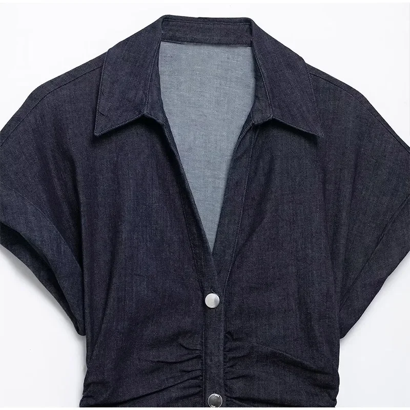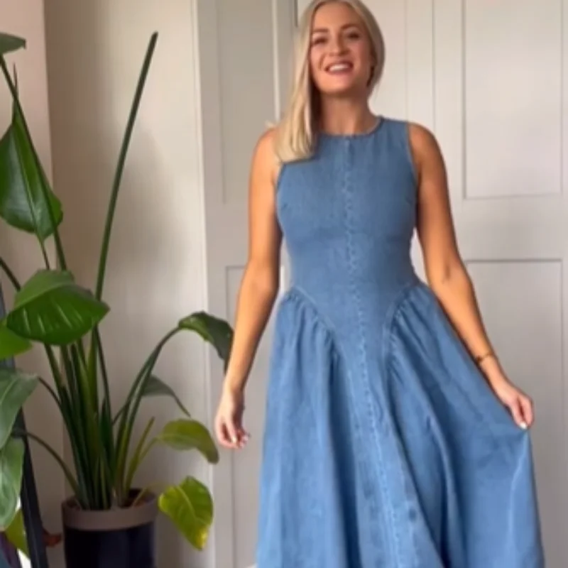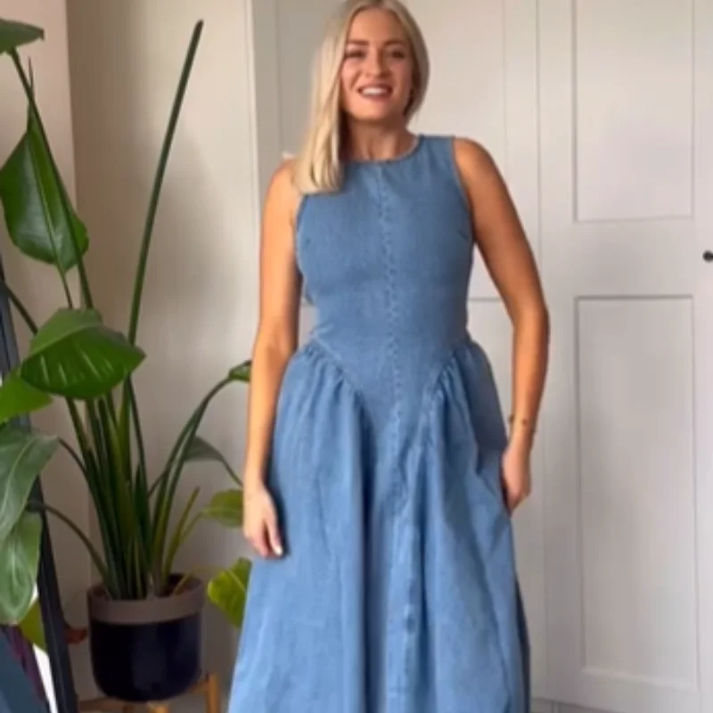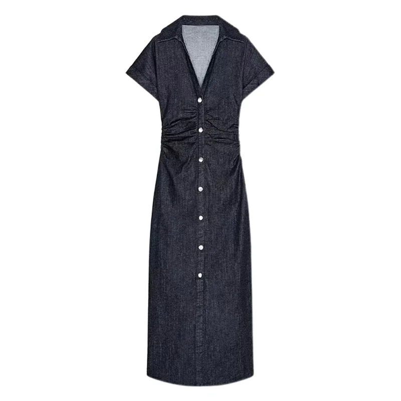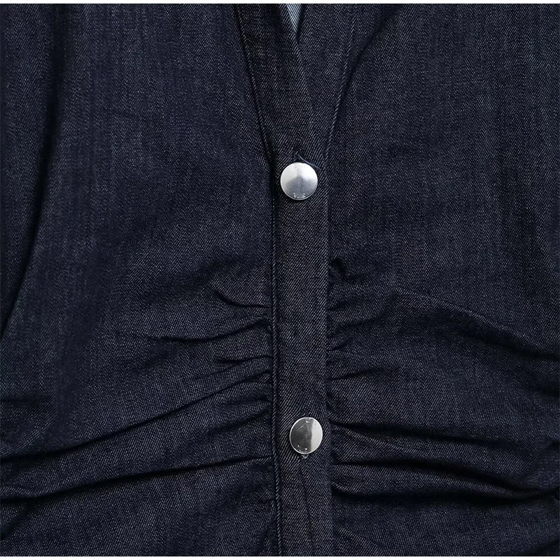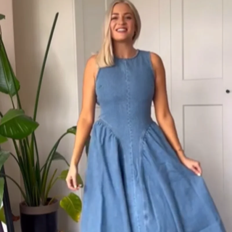 Hign-concerned Chemical:None Craft of Weaving:Tat Material Composition:synthetic fiber Release Date:Spring 2025 Closure Type:Pullover Profile Type:A Fabric Type:POLYESTER Type:Regular Age:Middle Age Place Of Origin:China (mainland) Model Number:Women Fashion Denim pleated Midi Dress Season:Spring/Summer Neckline:O-Neck Waistline:empire Sleeve Style:Regular Dresses Length:Mid-Calf Decoration:None Sleeve Length(cm):Sleeveless Pattern Type:Solid Silhouette:Sheath Style:Office Lady Material:POLYESTER Gender:Women Origin:Mainland China Brand Name:Beainmmry Elasticity:Slight Strech Fit Type:Slim
