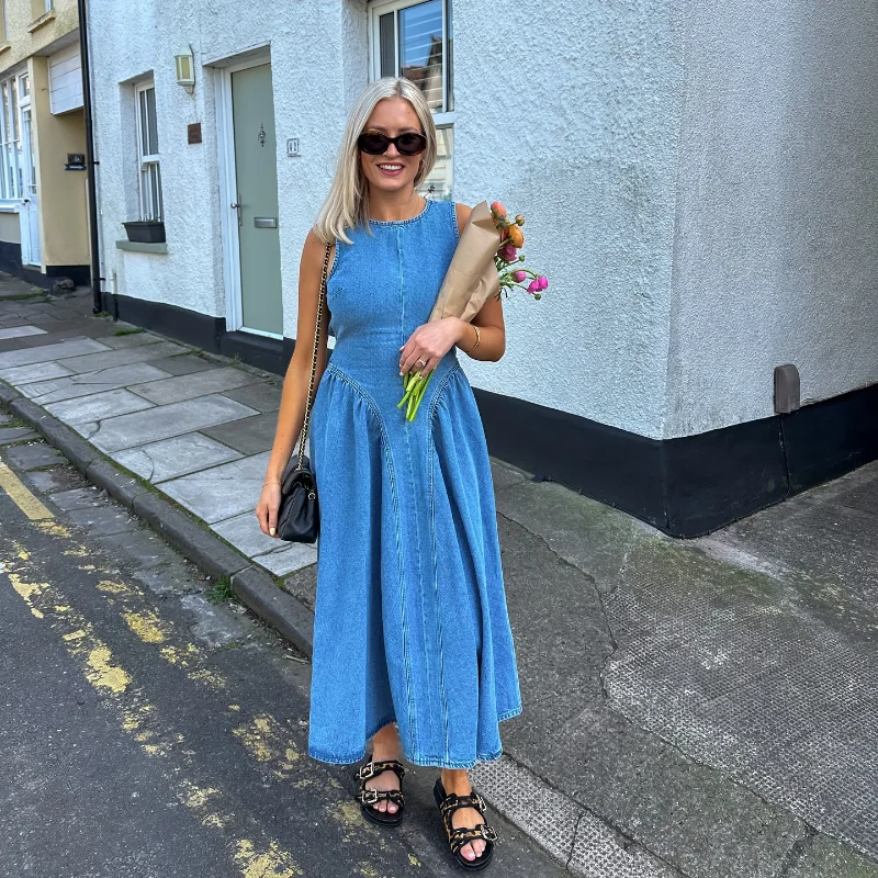 Stay cool in the summer with this sleeveless A-line maxi dress, offering both comfort and style.