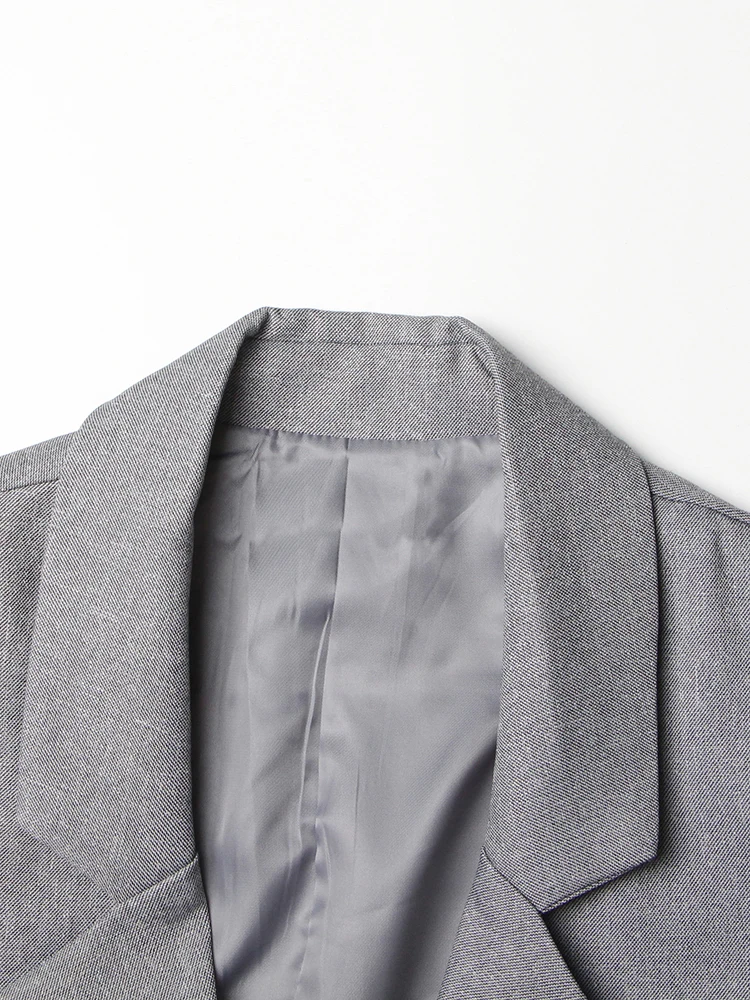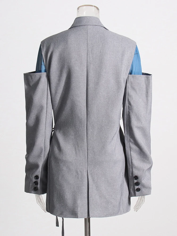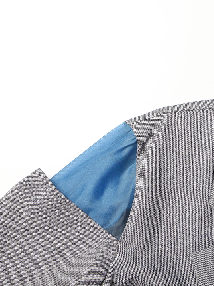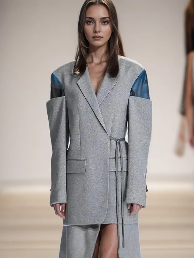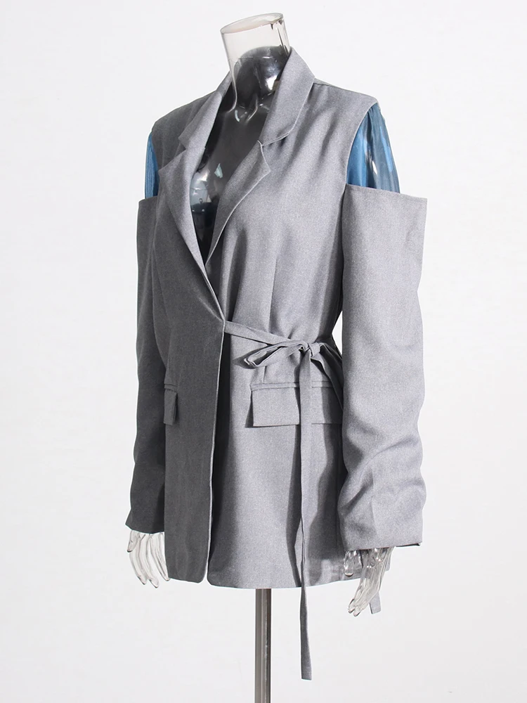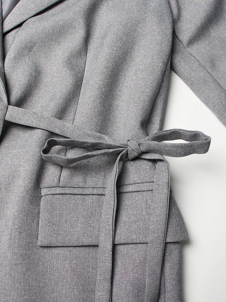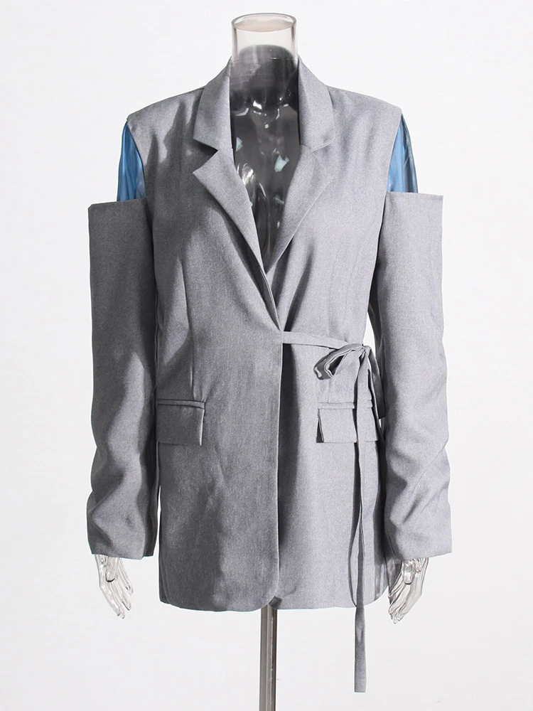 Patchwork Lace Up Casual Loose Blazers For Women Notched Collar Long Sleeve Spliced Pockets Minimalist Blazer Female Style