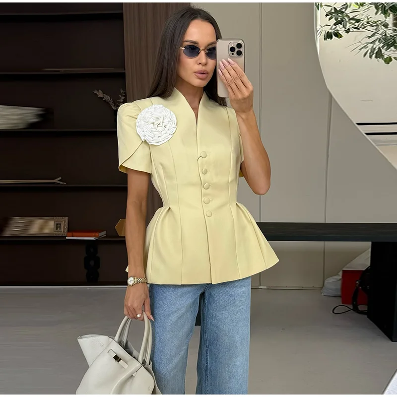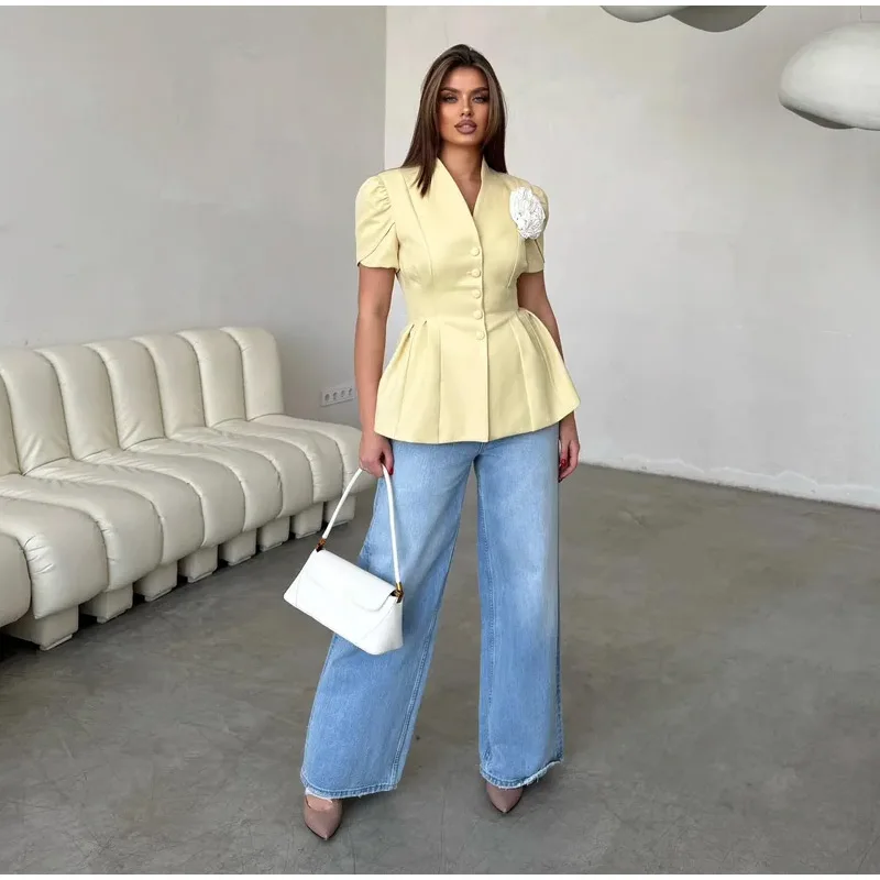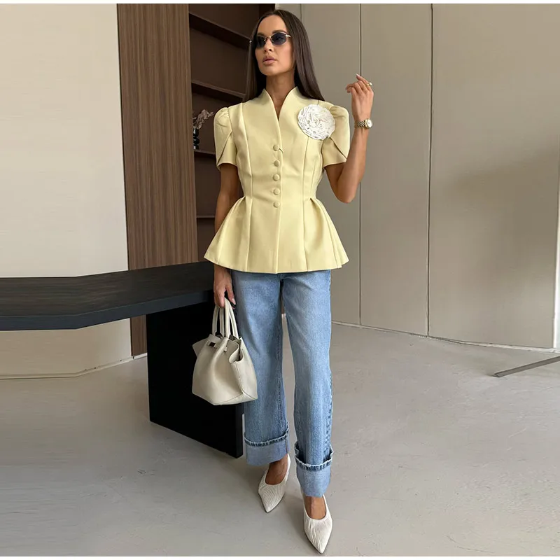 whether full opening:Yes Hign-concerned Chemical:None Craft of Weaving:Tat Thickness:Standard Sleeve Style:Regular Season:Spring/Summer Material Composition:synthetic fiber Release Date:Spring 2025 Fabric Type:Blended Fabric content:96% and above Clothing Patterns:Loose Age:Middle Age Place Of Origin:China (mainland) Model Number:Women's Blazer Coat Style:Streetwear Decoration:Spliced Hooded:No Collar:Turn-Down Collar Closure Type:None Pattern Type:Solid Clothing Length:Regular Sleeve Length(cm):Full Material:POLYESTER Gender:Women Origin:Mainland China Item Type:Blazers Brand Name:HTTEM CN:Zhejiang Elasticity:Slight Strech Fit Type:LOOSE FIT