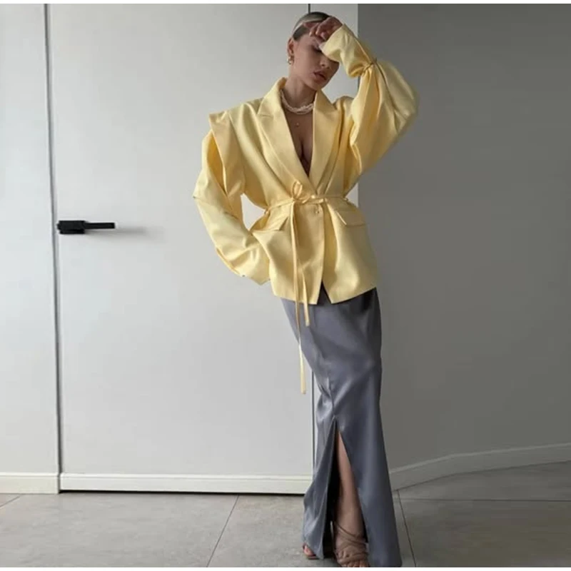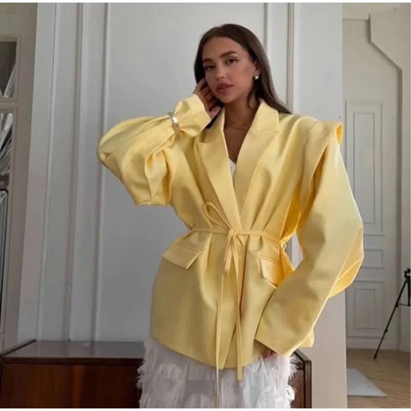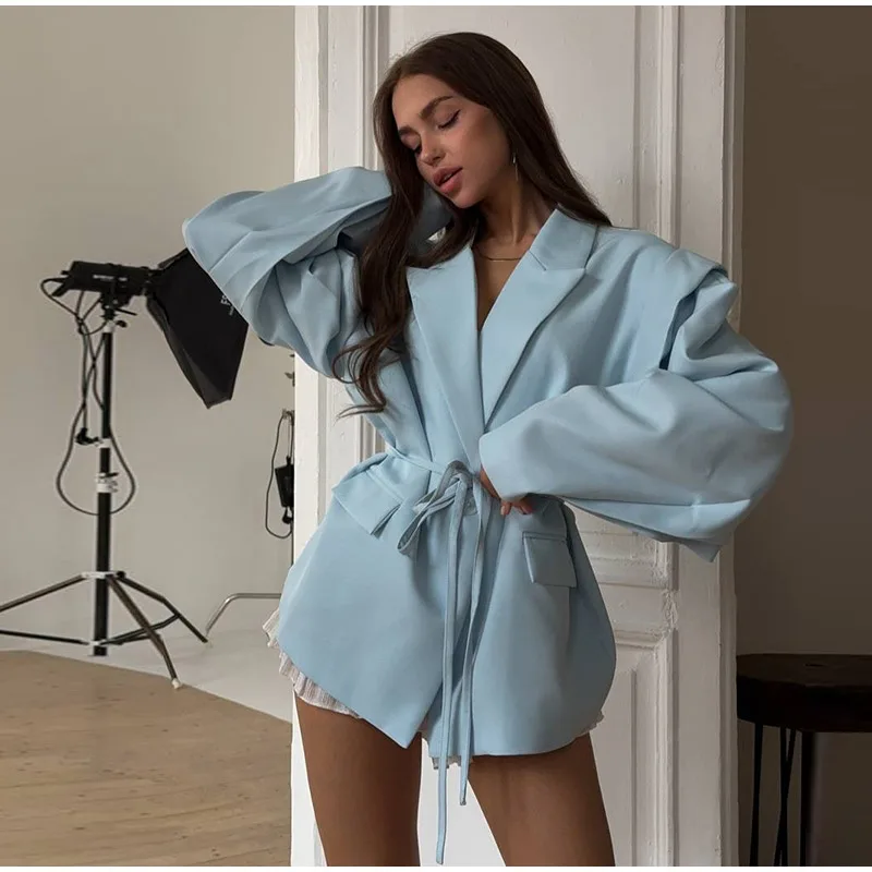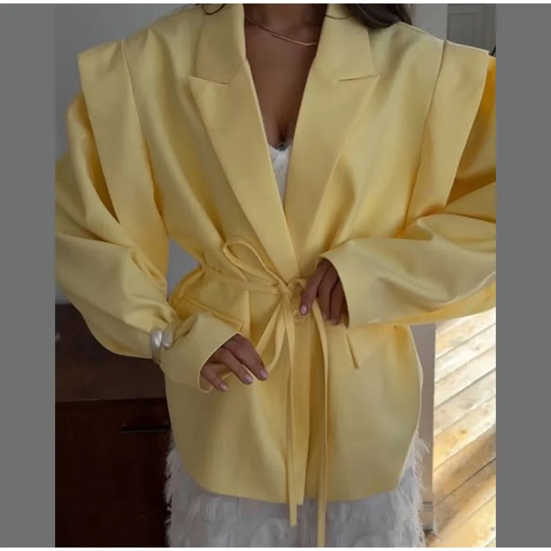 Fashion Lace Up Blazer Women Solid Long Sleeve Lapel Button Suit Jacket Female 2025 Spring Summer New Lady Loose Commute Outwear