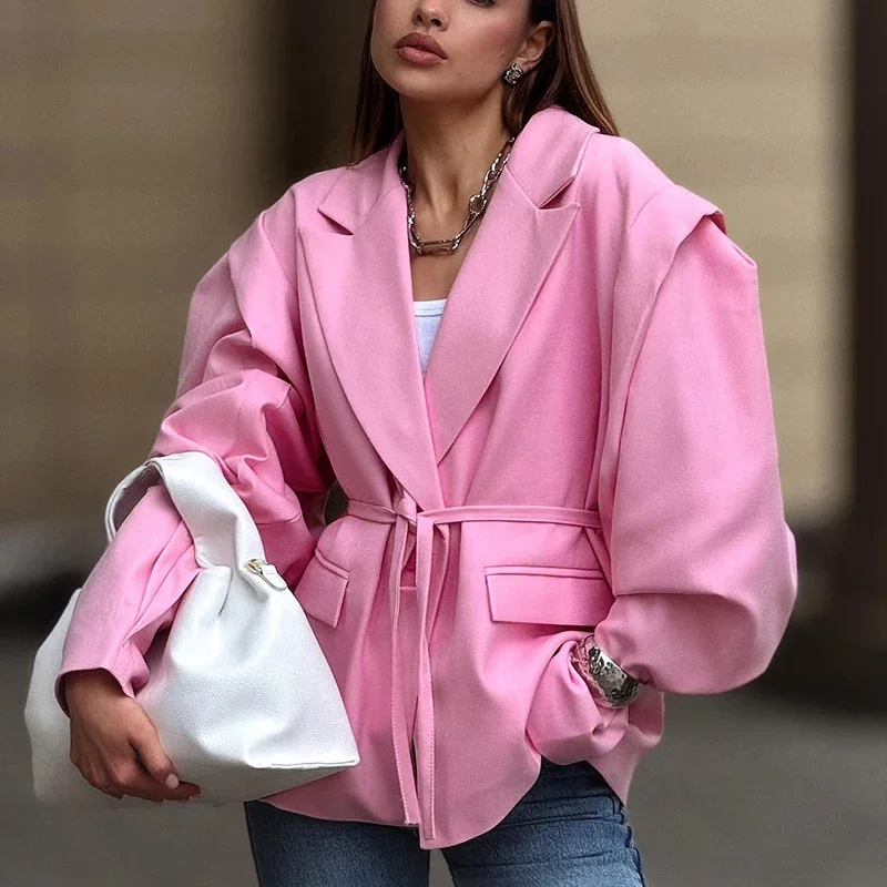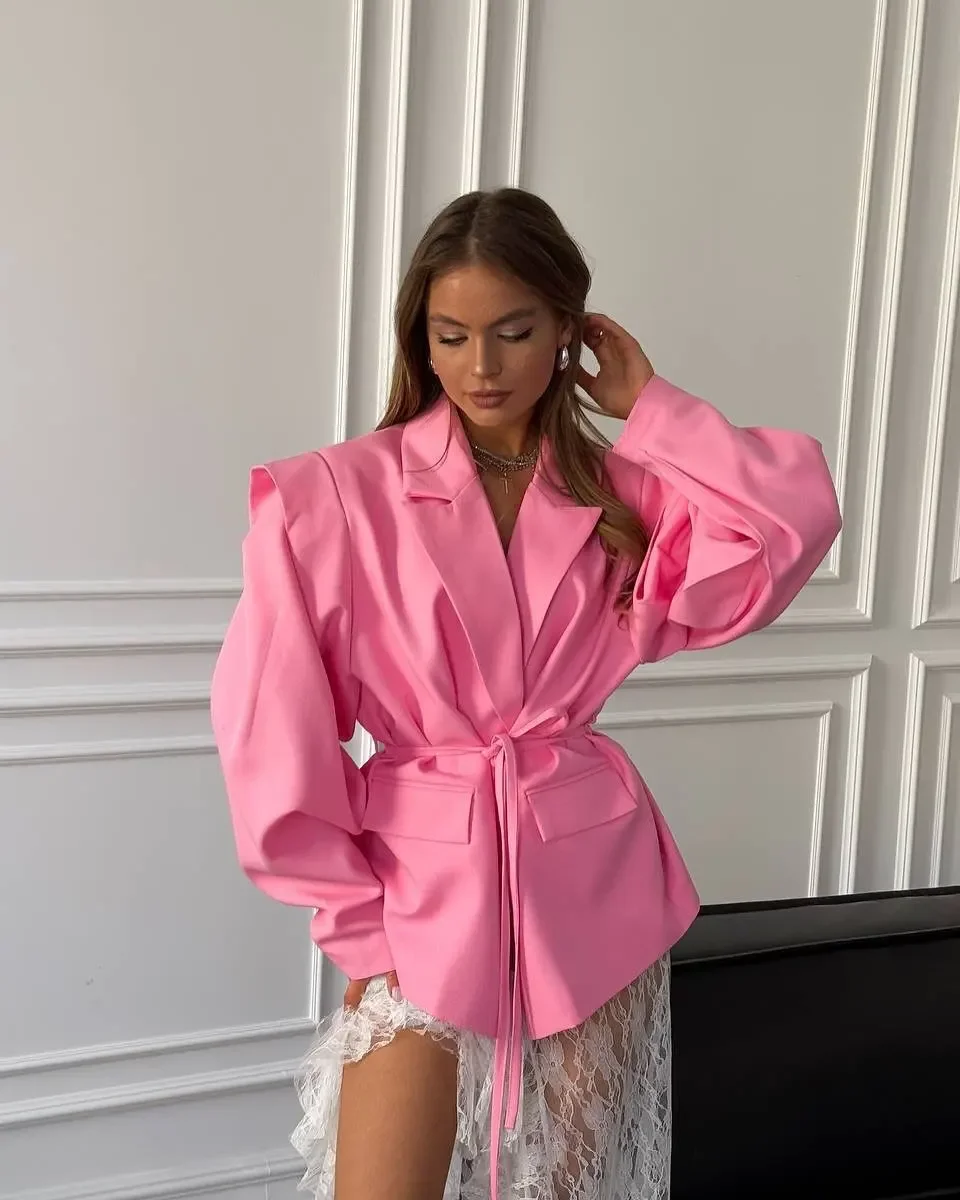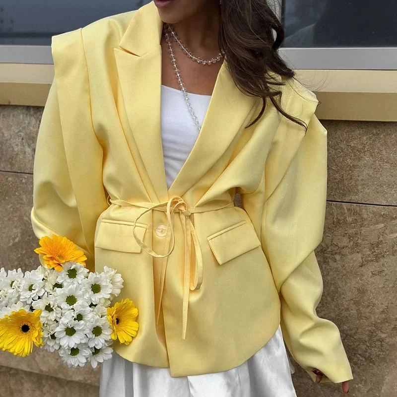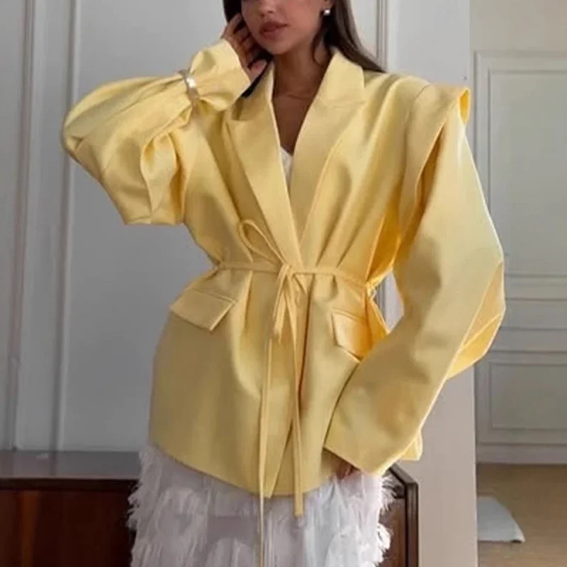 Tuularose Women's Blazer Fashion Solid Lace-up Loose Coat Elegant Casual Patchwork Commuter Street Luxury Female Jacket Outfits