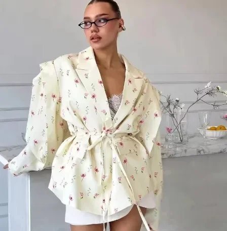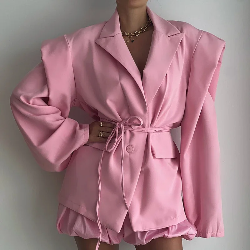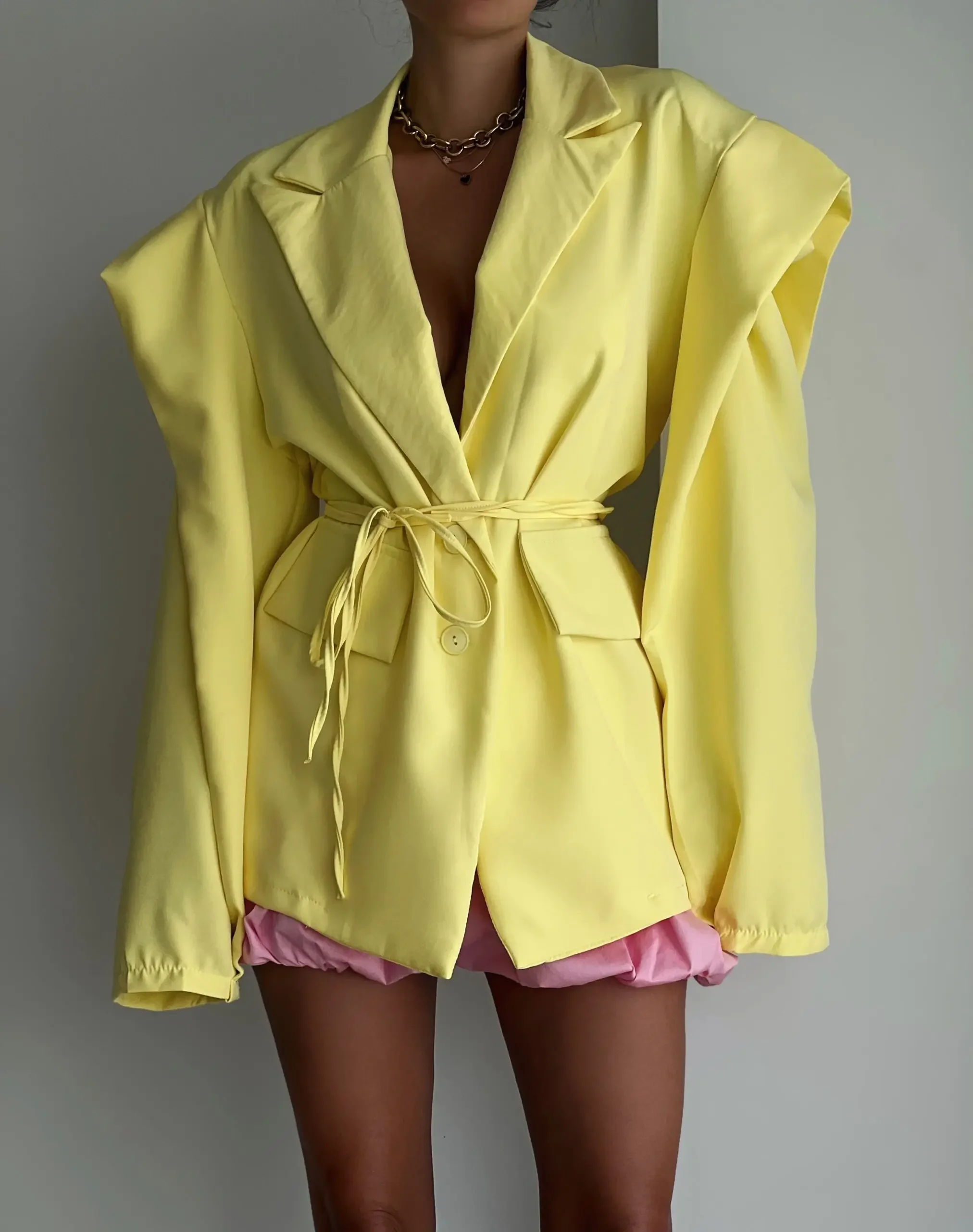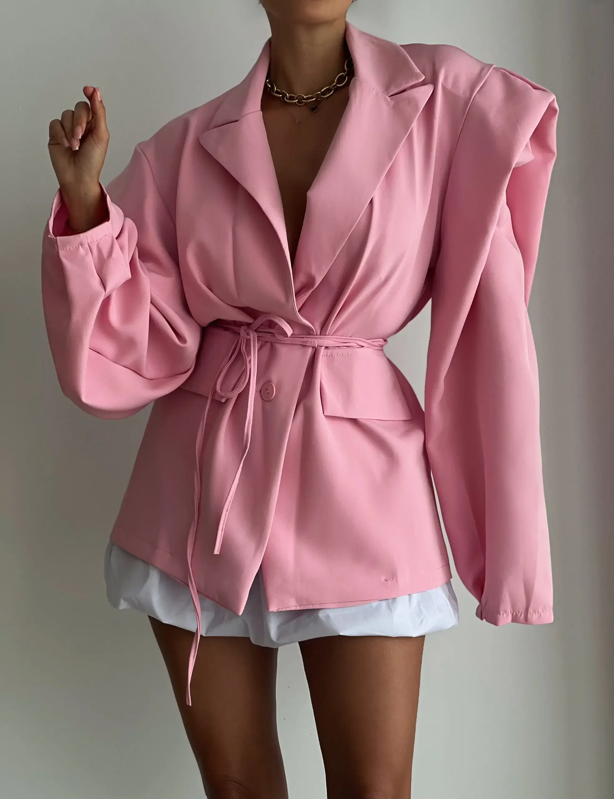 Tuularose Women's Blazer Fashion Solid Lace-up Loose Coat Elegant Casual Patchwork Commuter Street Luxury Female Jacket Outfits